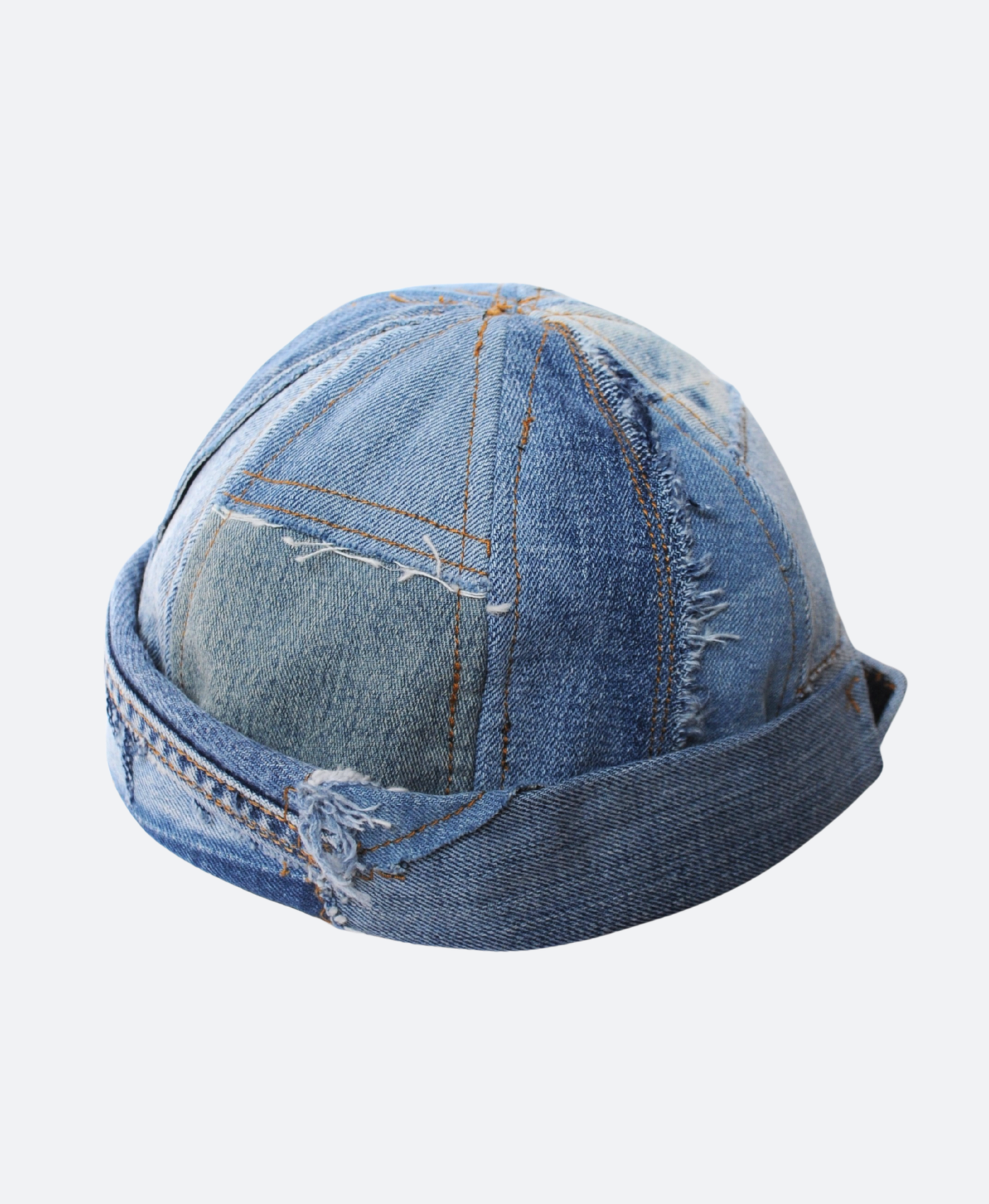 Shop nu onze Patchwork Spijkerstof Docker Cap. Dit iconische hoofddeksel herken je aan zijn strakke pasvorm en brede, omgeslagen rand. Door het verstelbare klittenband kun je de cap makkelijk verstellen naar de perfecte pasvorm.